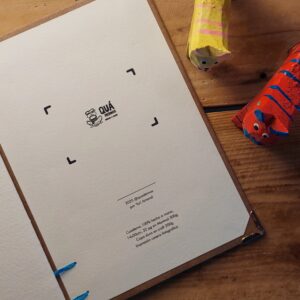 Capa: capa dura envolta em papel craft 180g, impressão fotográfica em preto