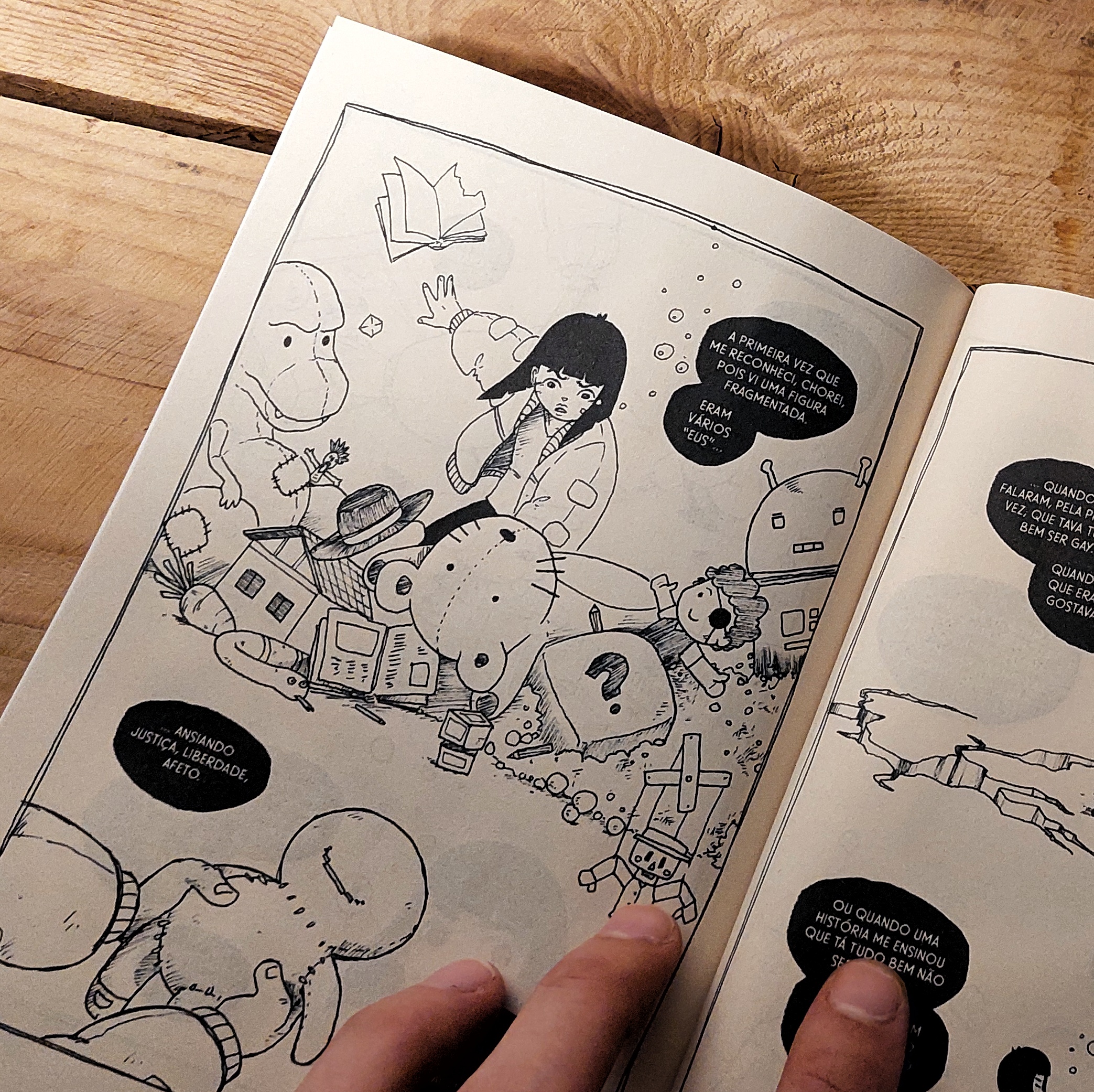 Criada por Yuri Amaral em 2019, Fractal – Interlúdios leva nossa heroína rumo ao seu próprio coração, em uma tentativa de encontrar fragmentos que tragam sentido para tanto sofrimento nessa vida. Sensível e agridoce, as duas histórias desse zine artesanal nos convida a mirar nuestra infância com carinho e acolhimento. Não pode faltar na sua coleção hehe
